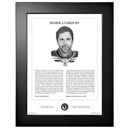 Celebrate the 2023 Hockey Hall of Fame Induction with the Henrik Lundqvist 12" x 16" frame!