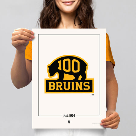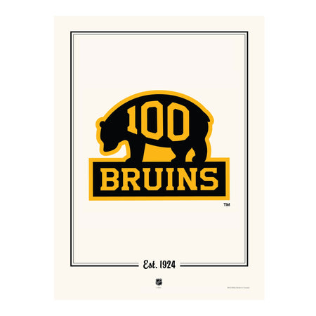 Commemorate the Boston Bruins' 100th Anniversary with this ONLINE EXCLUSIVE Centennial Boston Bruins print. The simple design features a prominent Centennial logo and established date. Printed on a textured archival paper, this piece is perfect as a solo item, or to fill an empty frame.
