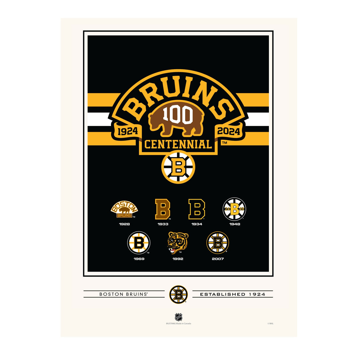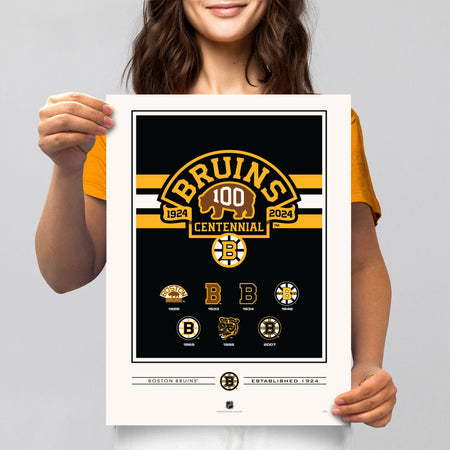 Boston Bruins 100th Anniversary Print - 12" x 16" Logos to History