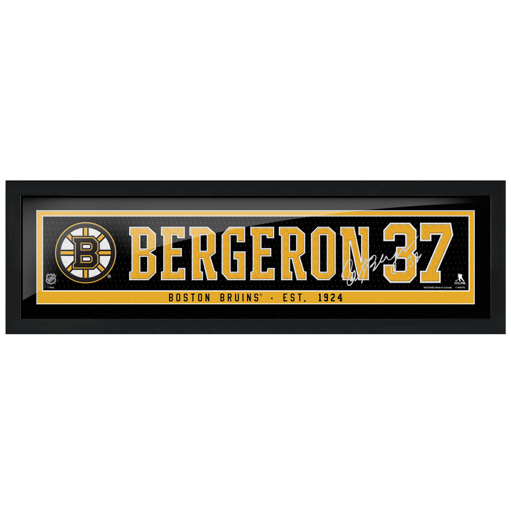 Boston Bruins Bergeron Framed Player Name Bar with Replica Autograph
