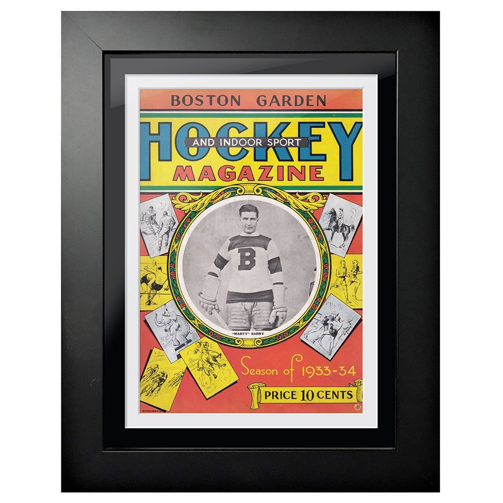 In the early days, long before cell phones and social media, hockey fans would arrive at their arena anxious to buy the latest game program giving them the latest info they needed to follow their favorite team. The advent of digital design and sophisticated photography has dramatically transformed the look and feel of the classic game-night program that captured the attention of fans. As early as the 1920’s, portraits and caricatures captured the scope of what fans would find at the rink. This truly unique Hockey Magazine cover from 1933 features Marty "Goal-a-Game" Barry who played for the Boston Bruins.