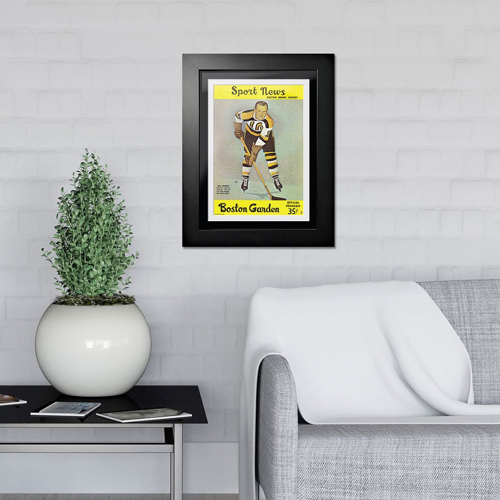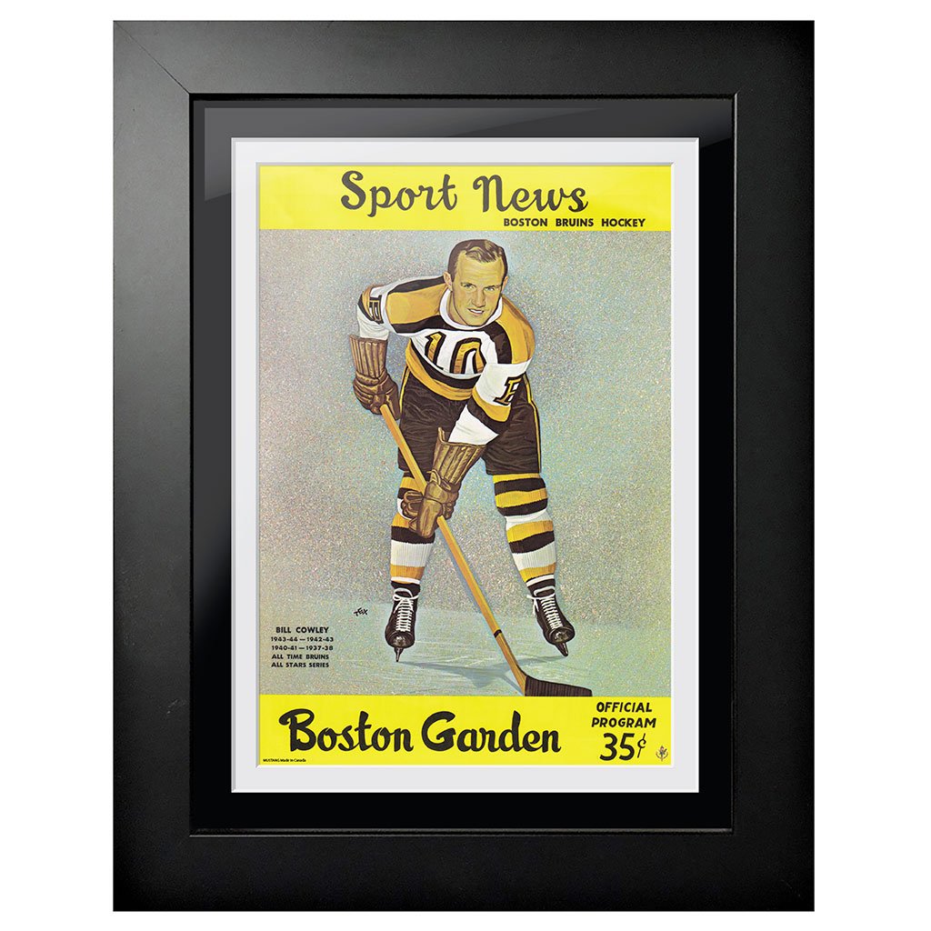 In the early days, long before cell phones and social media, hockey fans would arrive at their arena anxious to buy the latest game program giving them the latest info they needed to follow their favorite team. The advent of digital design and sophisticated photography has dramatically transformed the look and feel of the classic game-night program that captured the attention of fans. As early as the 1920’s, portraits and caricatures captured the scope of what fans would find at the rink. A classic Sport News Boston Garden program cover featuring an illustration of Bill "Cowboy" Cowley who played 13 seasons in the National Hockey League for the St. Louis Eagles and Boston Bruins. He twice won the Hart Memorial Trophy as the NHL's MVP.