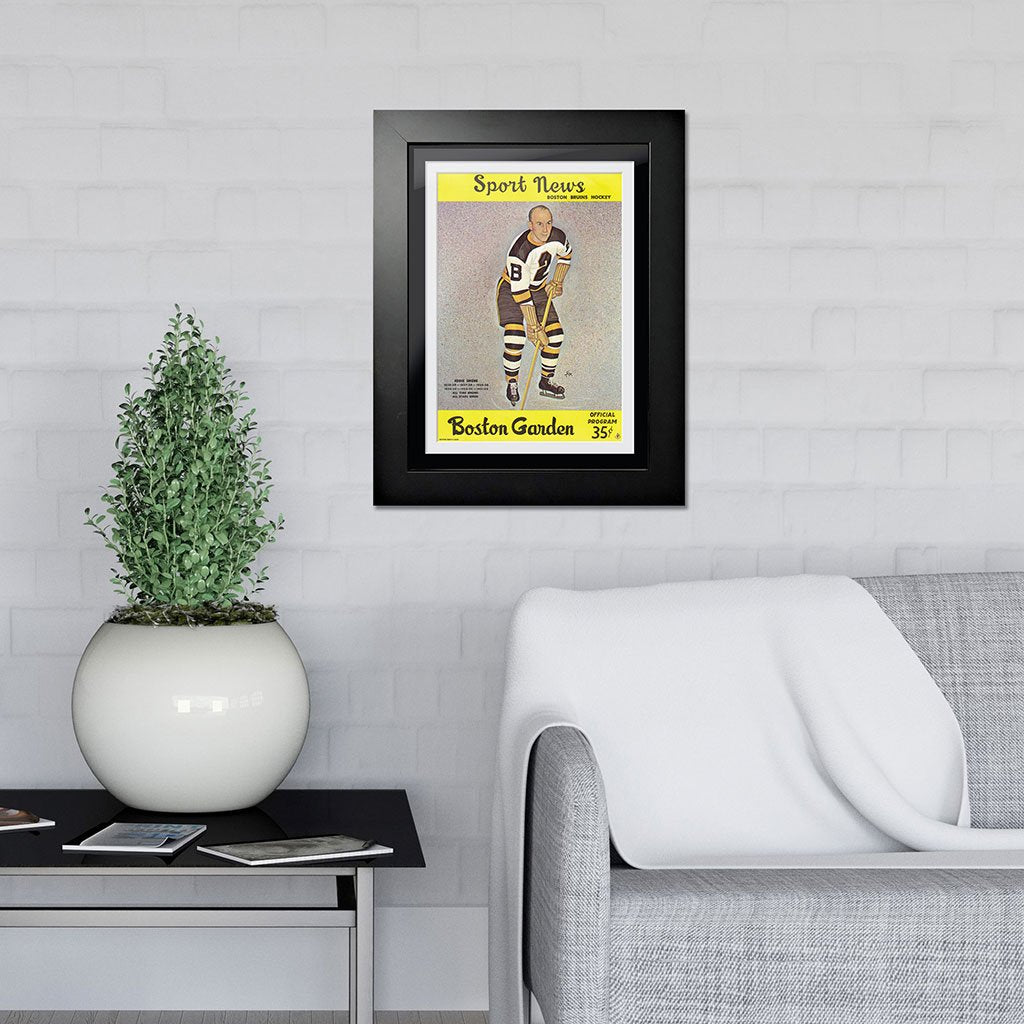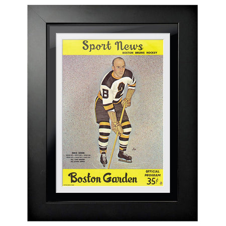In the early days, long before cell phones and social media, hockey fans would arrive at their arena anxious to buy the latest game program giving them the latest info they needed to follow their favorite team. The advent of digital design and sophisticated photography has dramatically transformed the look and feel of the classic game-night program that captured the attention of fans. As early as the 1920’s, portraits and caricatures captured the scope of what fans would find at the rink. This is a classic Sport News Boston Garden program cover featuring an illustration of Eddie Shore who played principally for the Boston Bruins and was iconic for his toughness and defensive skill.