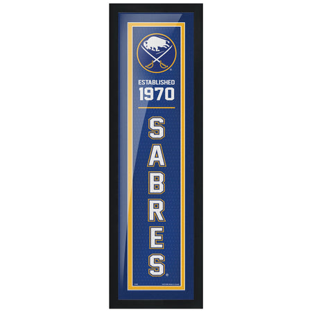 The perfect addition to any hockey Fan Cave, Man Cave, office or bar. This Buffalo Sabres wall art includes one of our officially licensed NHL graphics, printed and placed into our 6” x 22” framed art kits by our Canadian production team. This fine piece of wall-décor ships with a protective acrylic cover to minimize breakage and increase the lifespan of your product. All framed home décor comes with pre-mounted hanging hardware. Additional mounting hardware may be required.