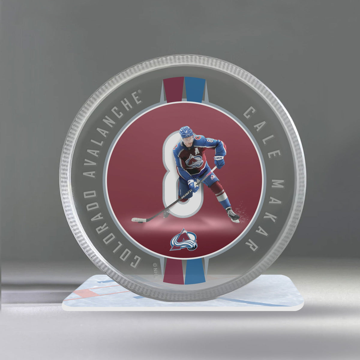 Show off your devout Makar fandom with the crystal Breakout Cale Makar puck!