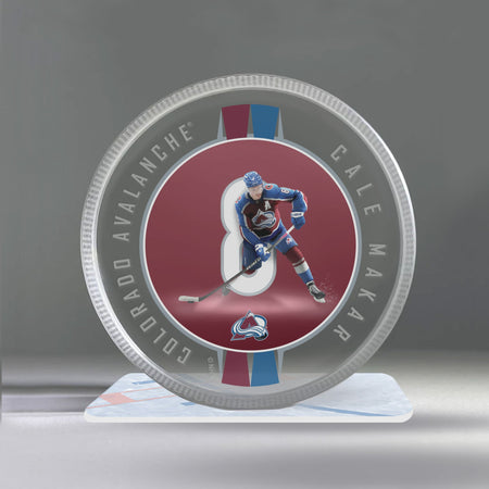 The crystal puck features an image of Makar breaking through his jersey number, the player's name, and the team's name and logo, all over a stylish team colored backdrop. The piece is complete with a presentation box that adds to the premium feel of the puck, making it perfect for gift-giving or adding to your collection. The intricate details make this puck an ideal piece of memorabilia which you can enjoy for years to come.