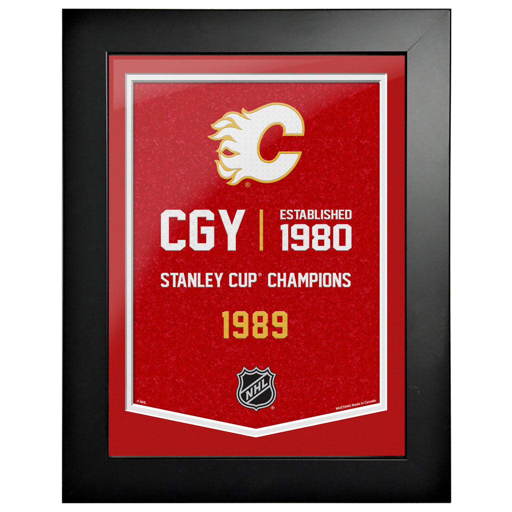 The perfect addition to any hockey Fan Cave, Man Cave, office or bar. This Calgary Flames wall art includes one of our officially licensed NHL graphics, printed and placed into our 12” x 16” framed art kits by our Canadian production team. This fine piece of wall-décor ships with a protective acrylic cover to minimize breakage and increase the lifespan of your product. All framed home décor comes with pre-mounted hanging hardware. Additional mounting hardware may be required.