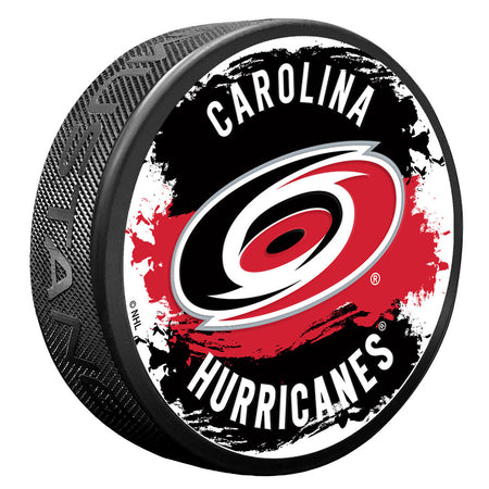 This puck features a stylish graffiti design using the team’s name and logo. The 3D engraving adds texture that you won’t find with just a regular printed puck, making this a stand-out in your collection!