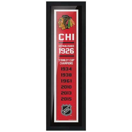 The perfect addition to any hockey Fan Cave, Man Cave, office or bar. This Chicago Blackhawks wall art includes one of our officially licensed NHL graphics, printed and placed into our 6” x 22” framed art kits by our Canadian production team. This fine piece of wall-décor ships with a protective acrylic cover to minimize breakage and increase the lifespan of your product. All framed home décor comes with pre-mounted hanging hardware. Additional mounting hardware may be required.