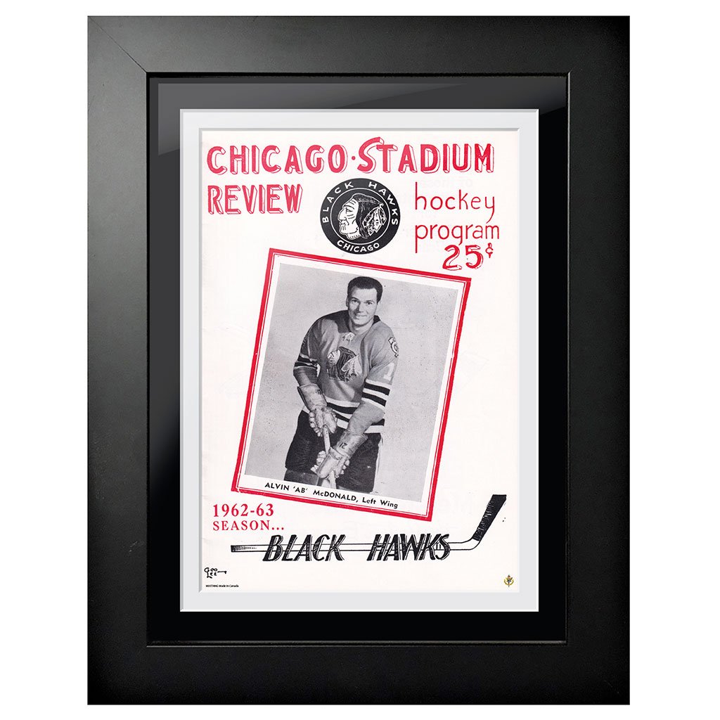 In the early days, long before cell phones and social media, hockey fans would arrive at their arena anxious to buy the latest game program giving them the latest info they needed to follow their favorite team. The advent of digital design and sophisticated photography has dramatically transformed the look and feel of the classic game-night program that captured the attention of fans. As early as the 1920’s, portraits and caricatures captured the scope of what fans would find at the rink. This Chicago Stadium Review program from 1961 features a great photo of left wing Ab McDonald.
