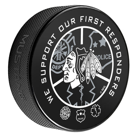 The First Responder Chicago Blackhawks puck was created to honor the First Responders who selflessly serve the community every day. Show your appreciation for their hard work and dedication, while also supporting your favorite team.