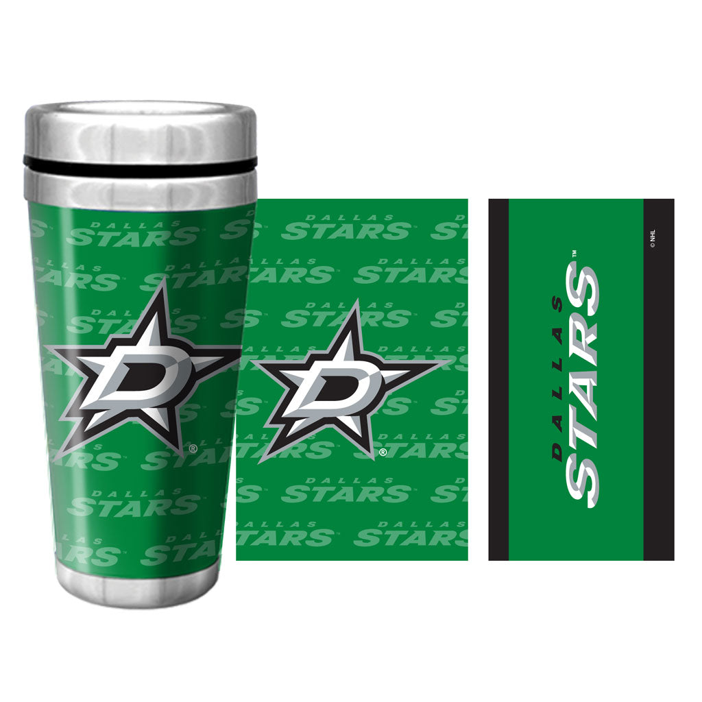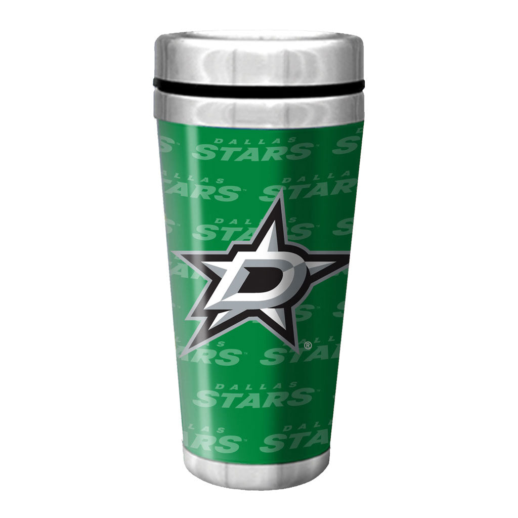 Sport your Stars fandom everywhere you go with this 16 oz. Full Wrap Wallpaper Dallas Stars Travel Mug. It's perfect for carrying your favorite beverage no matter where you go—whether you're headed to the game or on your daily commute. The double-wall stainless-steel insulator ensures your drink stays warm. The mug is finished with a Dallas Stars design wrapped around the entire exterior.