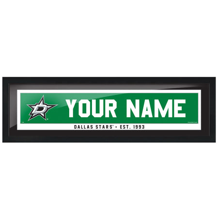 The perfect addition to any hockey Fan Cave, Man Cave, office or bar. This personalized Dallas Stars wall art includes one of our officially licensed NHL graphics, printed and placed into our 6” x 22” framed art kits by our Canadian production team. This fine piece of wall-décor ships with a protective acrylic cover to minimize breakage and increase the lifespan of your product. All framed home décor comes with pre-mounted hanging hardware. Additional mounting hardware may be required.
