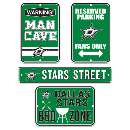A fantastic value with a variety of signs for many different spaces in your Dallas Stars household. This 4-pack of signs features: