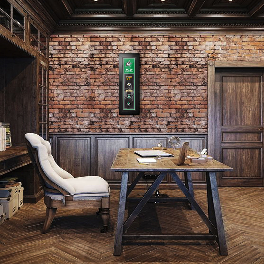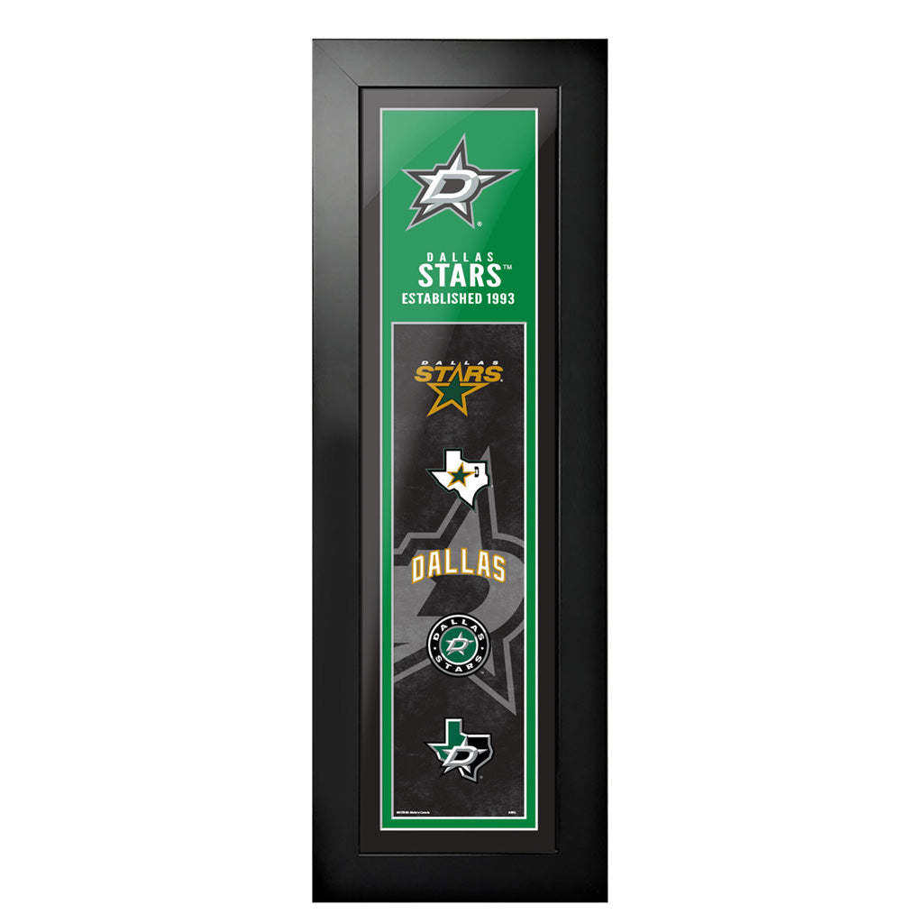 The perfect addition to any hockey Fan Cave, Man Cave, office or bar. This Dallas Stars wall art includes one of our officially licensed NHL graphics, printed and placed into our 6” x 22” framed art kits by our Canadian production team. This fine piece of wall-décor ships with a protective acrylic cover to minimize breakage and increase the lifespan of your product. All framed home décor comes with pre-mounted hanging hardware. Additional mounting hardware may be required.