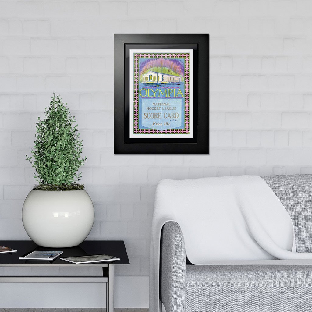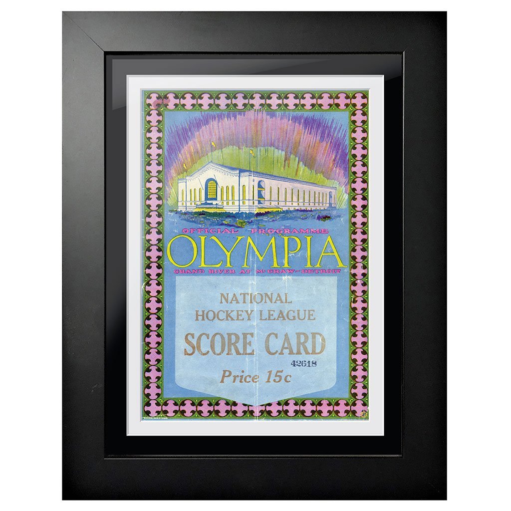 In the early days, long before cell phones and social media, hockey fans would arrive at their arena anxious to buy the latest game program giving them the latest info they needed to follow their favorite team. The advent of digital design and sophisticated photography has dramatically transformed the look and feel of the classic game-night program that captured the attention of fans. As early as the 1920’s, portraits and caricatures captured the scope of what fans would find at the rink. This program unique program cover features Olympia Stadium.
