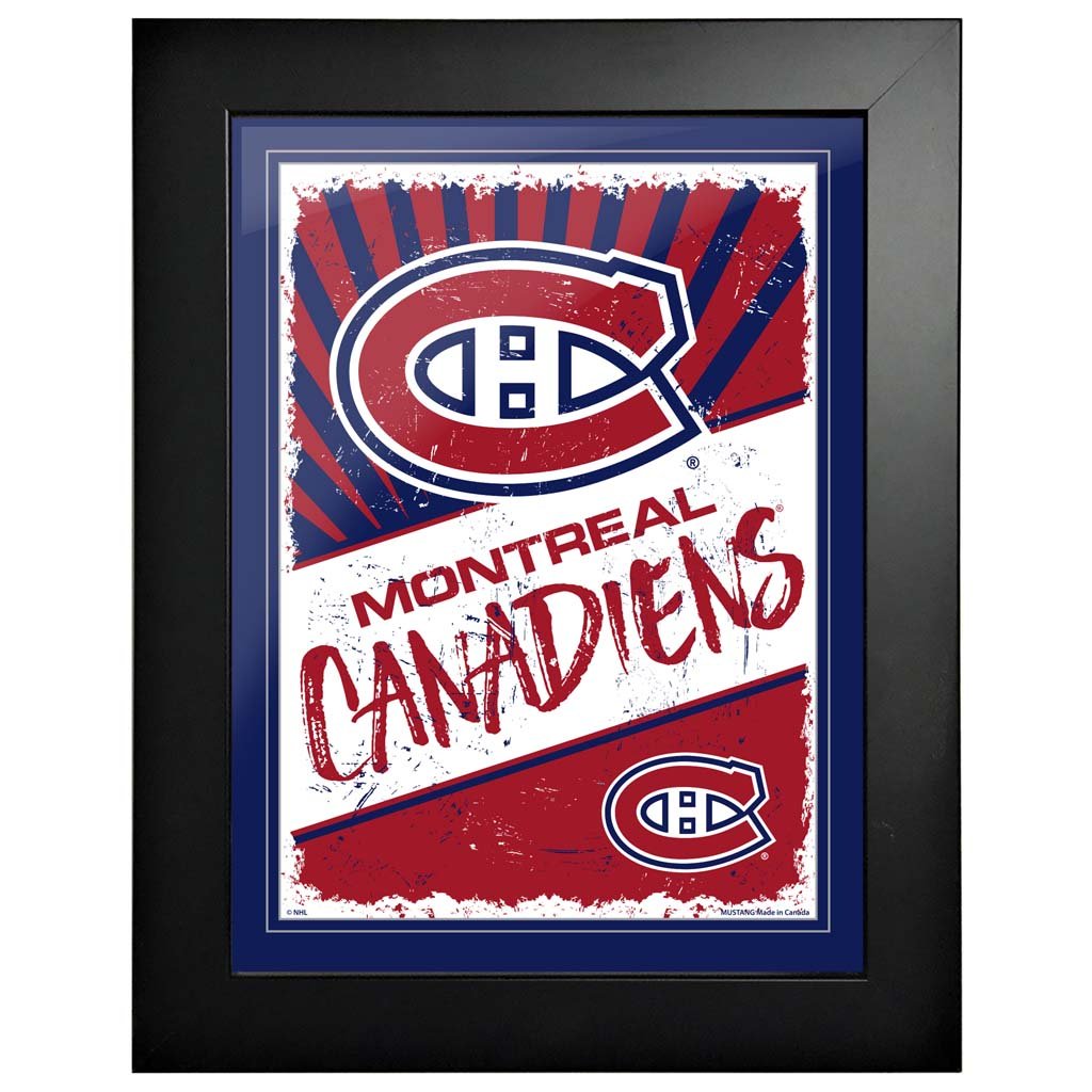 The perfect addition to any hockey Fan Cave, Man Cave, office or bar. This Montreal Canadiens wall art includes one of our officially licensed NHL graphics, printed and placed into our 12” x 16” framed art kits by our Canadian production team. This fine piece of wall-décor ships with a protective acrylic cover to minimize breakage and increase the lifespan of your product. All framed home décor comes with pre-mounted hanging hardware. Additional mounting hardware may be required.