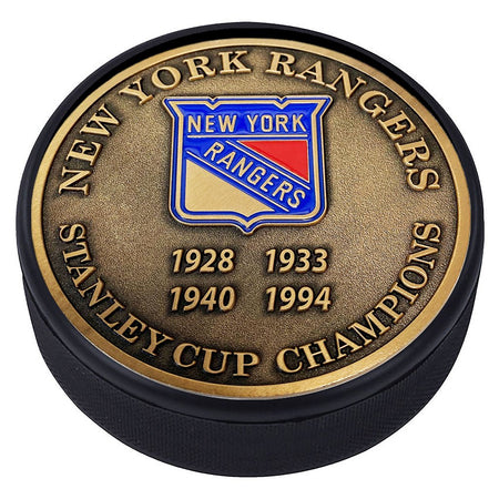 New York Rangers Puck - Stanley Cup Years Gold Medallion