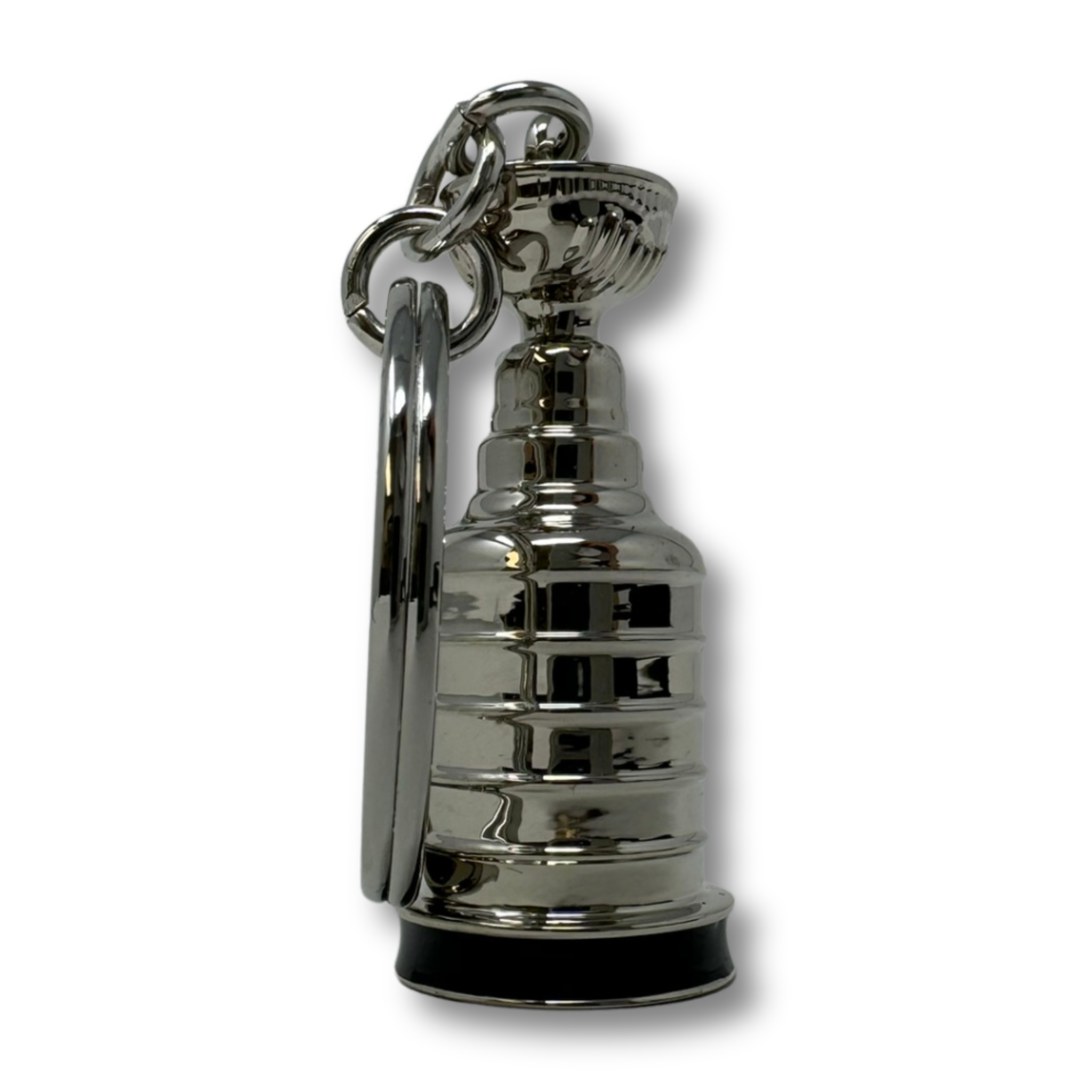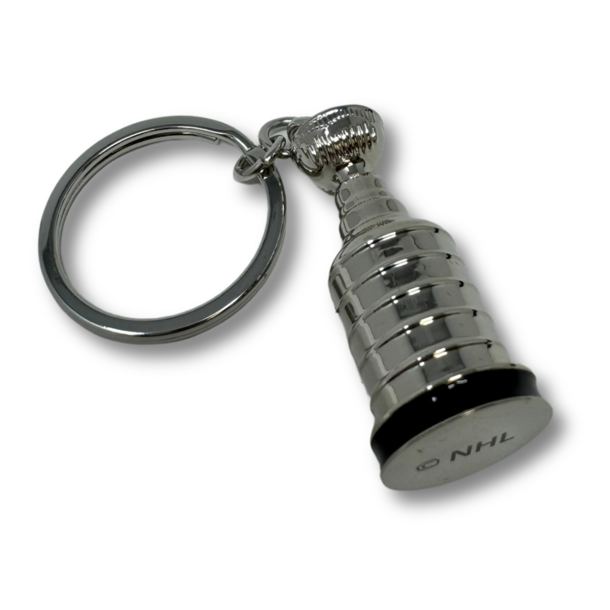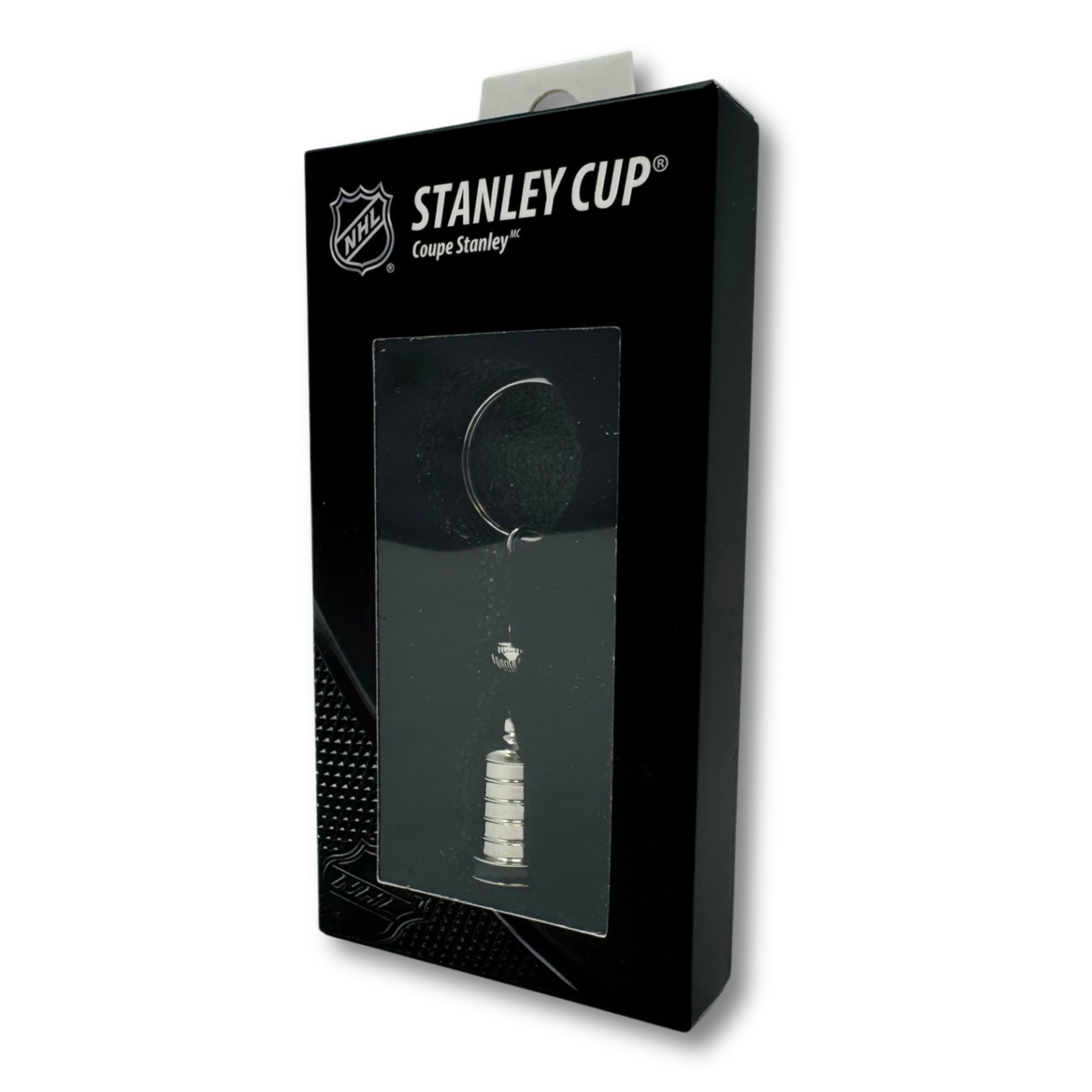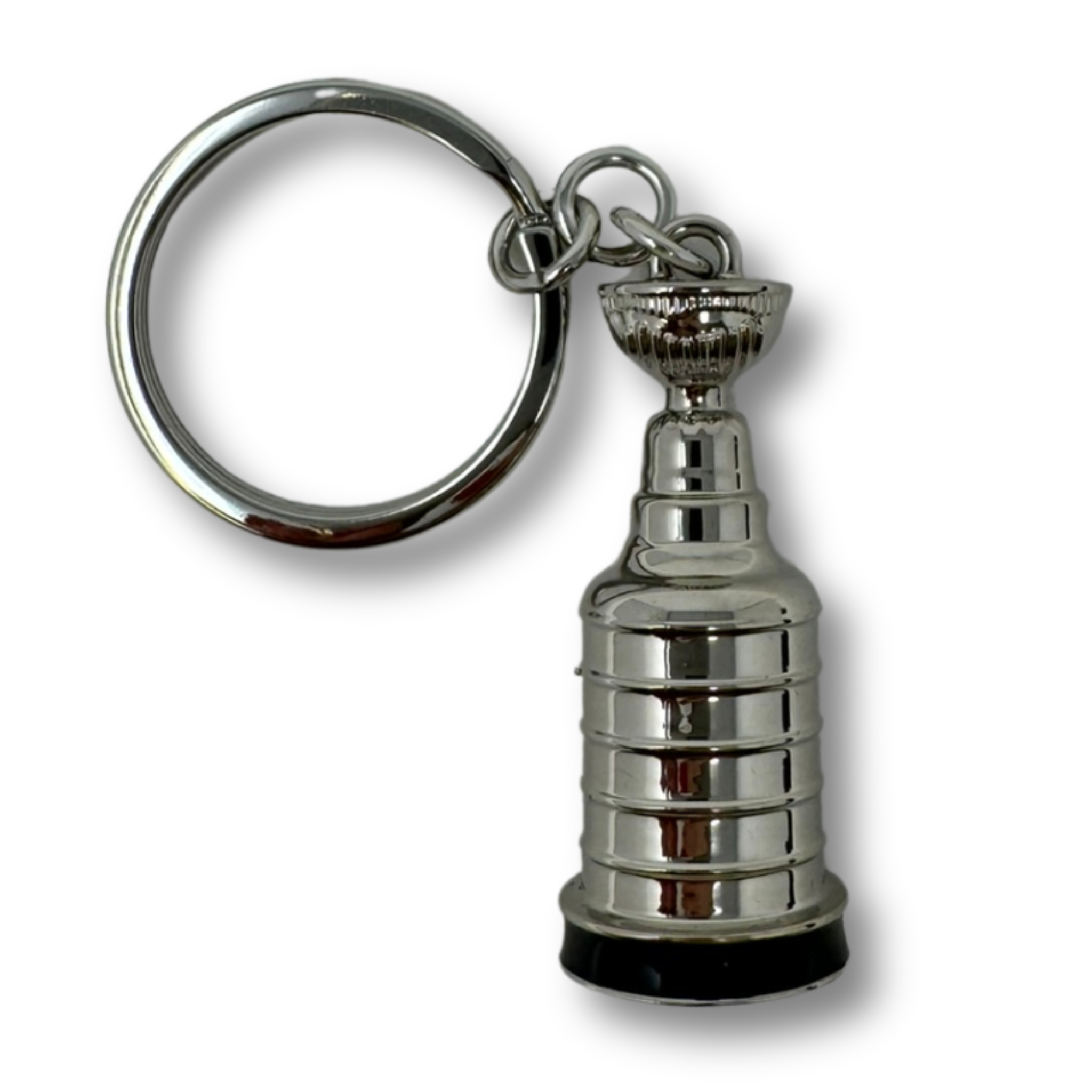Take your love of hockey on the go with the 3D Stanley Cup keychain! The keychain sports a 1 1/2" Stanley Cup replica trophy on a 1 1/2" silver chain. The chrome finish adds an authentic shine that is bound to make a statement. Packaged in a black NHL cardboard case, this piece is perfect for gifting to yourself or a fellow fan!