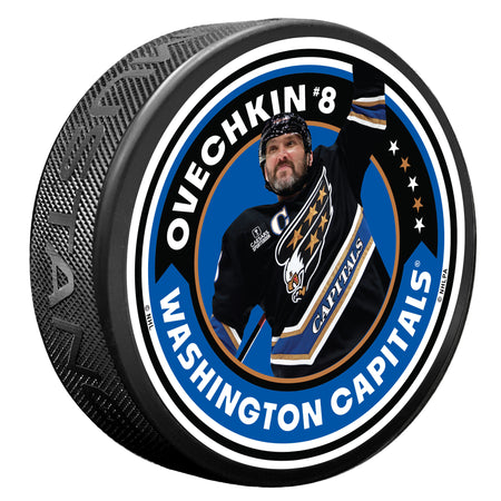 This LIMITED-EDITION Screaming Eagle Puck puck is designed with the Ovechkin celebrating in the classic vintage screaming eagle jersey. The bold print will guarantee it stands out in your collection!