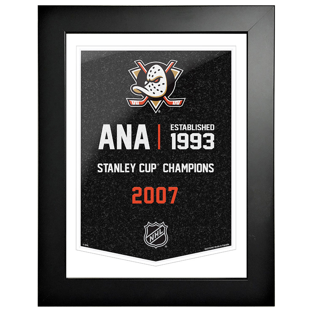 The perfect addition to any hockey Fan Cave, Man Cave, office or bar. This Anaheim Ducks wall art includes one of our officially licensed NHL graphics, printed and placed into our 12” x 16” framed art kits by our Canadian production team. This fine piece of wall-décor ships with a protective acrylic cover to minimize breakage and increase the lifespan of your product. All framed home décor comes with pre-mounted hanging hardware. Additional mounting hardware may be required.