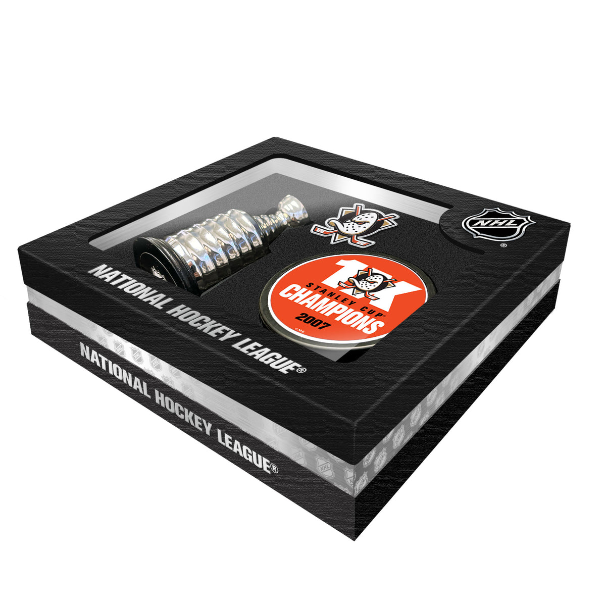 Anaheim Ducks Stanley Cup Champs Puck + Replica Cup Gift Box Set