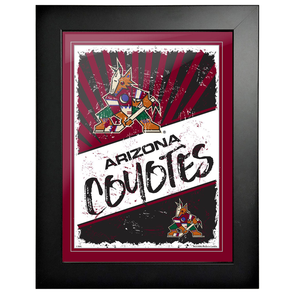 The perfect addition to any hockey Fan Cave, Man Cave, office or bar. This Arizona Coyotes wall art includes one of our officially licensed NHL graphics, printed and placed into our 12” x 16” framed art kits by our Canadian production team. This fine piece of wall-décor ships with a protective acrylic cover to minimize breakage and increase the lifespan of your product. All framed home décor comes with pre-mounted hanging hardware. Additional mounting hardware may be required.