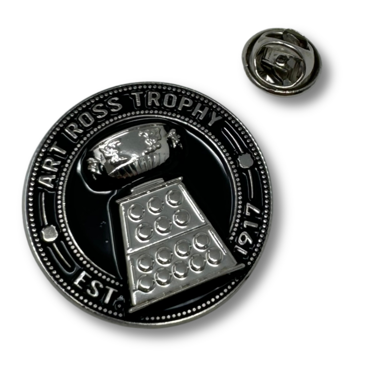 Whether displayed or worn on your clothes or bag, this 3D Medallion Art Ross Trophy pin is sure to make a statement! The design features the trophy image, name, and established date all in a 3D silver-plated finish. The high-polish, jewelry level finish makes the design pop. The pin is packaged on a 2 1/4" x 2 1/2" bagged backer card, making it a great gifting piece for yourself or a fellow fan!