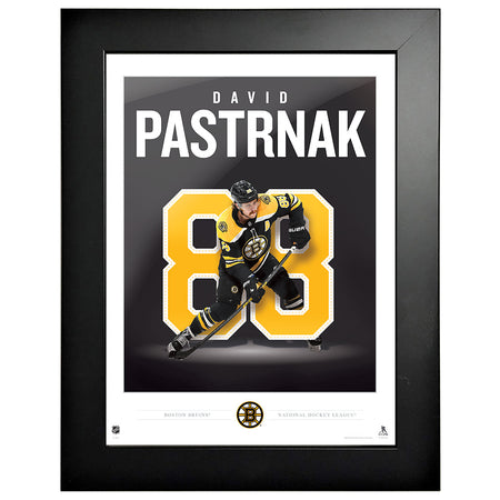 Show off your Boston Bruins pride with this sleek framed David Pastrnak player print. Featuring bold graphics of Pastrnak in action alongside his name and number 88, this officially licensed NHL collectible is the perfect addition to any fan cave, office, or game room. The vibrant Boston black background and crisp presentation make it a standout piece that highlights your favorite player.