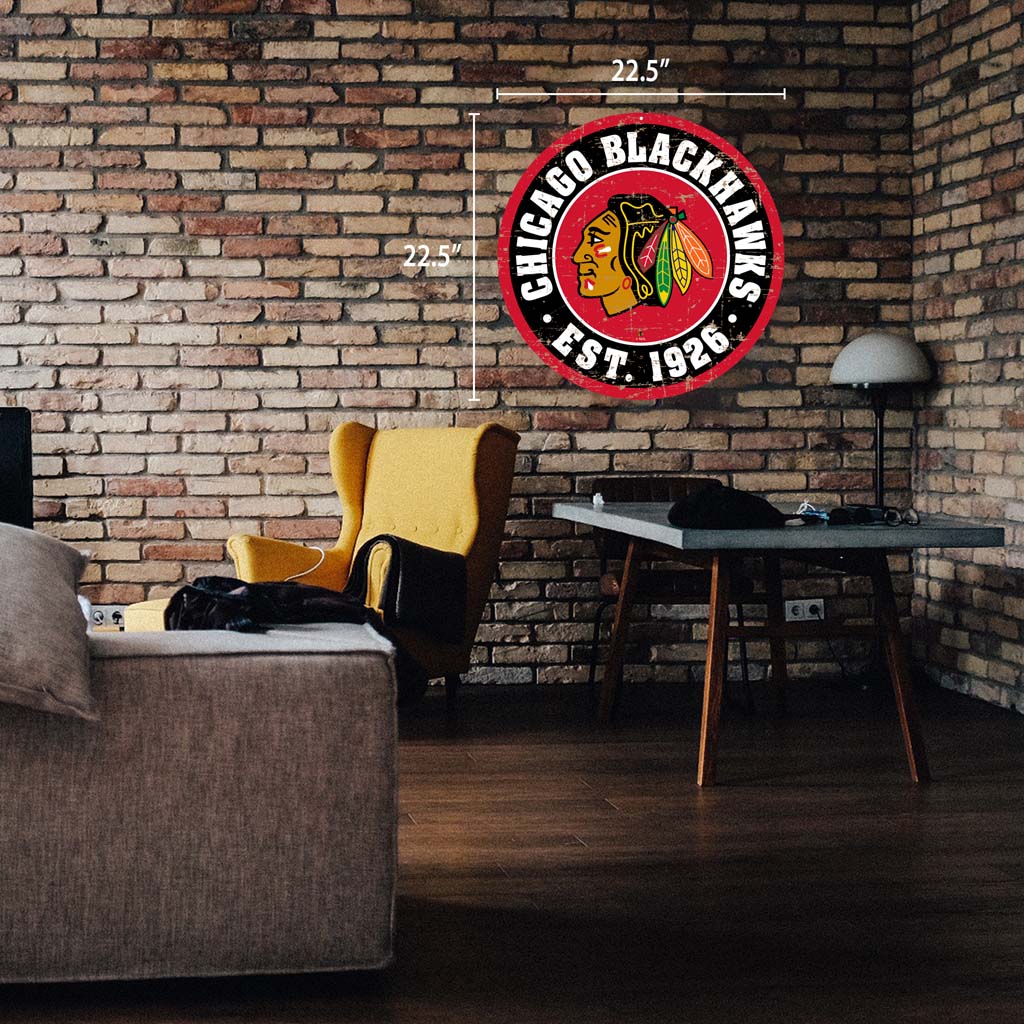 Chicago Blackhawks Sign - 22" Round Distressed Logo