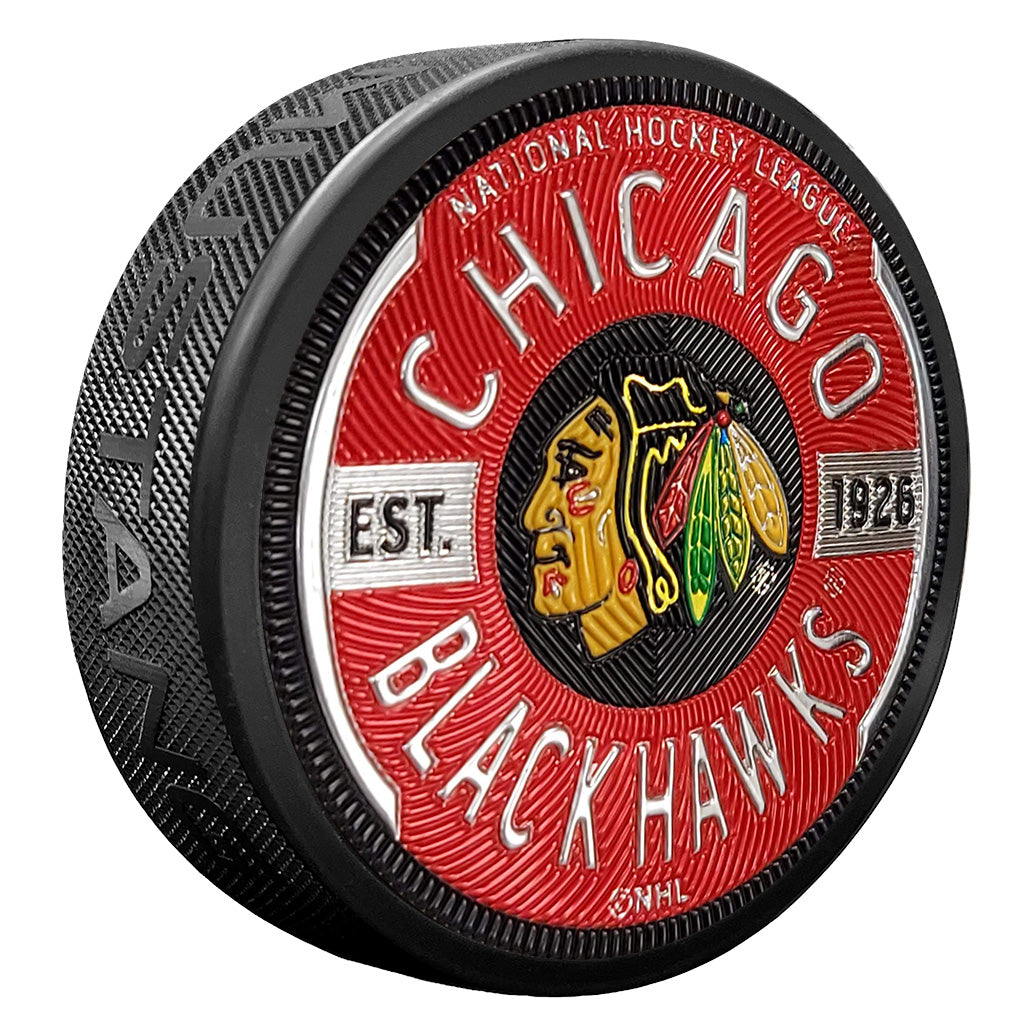 The Chicago Blackhawks fan in your house will love this collectible puck. Finished with a high impact chrome finish, this work of art celebrates the vibrancy of the Blackhawks. The details are deeply embossed with a textured feel. All TRIMFLEXX pucks are assembled in Canada. Product is an officially licensed NHL puck and perfect for any puck collector.