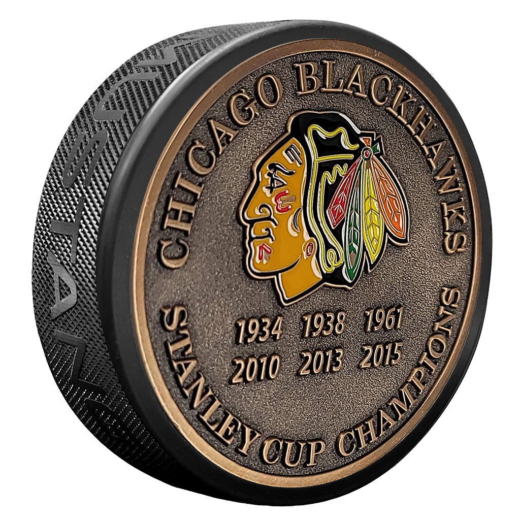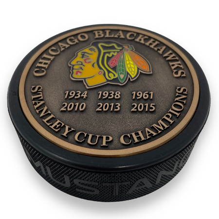 Chicago Blackhawks Puck - Stanley Cup Years Gold Medallion