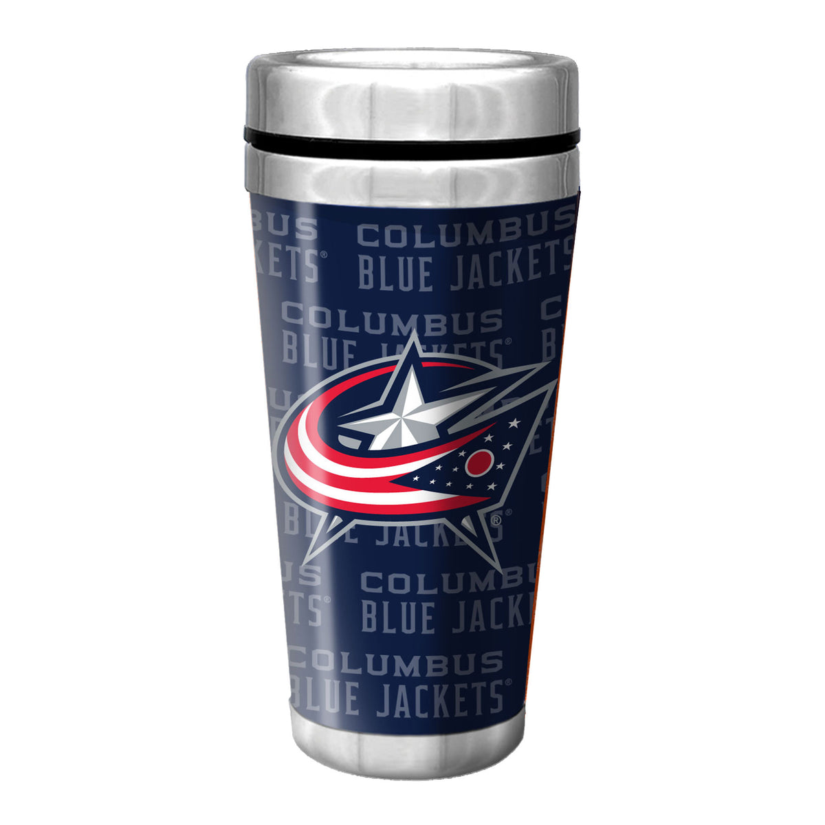 Sport your Blue Jackets fandom everywhere you go with this 16 oz. Full Wrap Wallpaper Columbus Blue Jackets Travel Mug. It's perfect for carrying your favorite beverage no matter where you go—whether you're headed to the game or on your daily commute. The double-wall stainless-steel insulator ensures your drink stays warm. The mug is finished with a Columbus Blue Jackets design wrapped around the entire exterior.