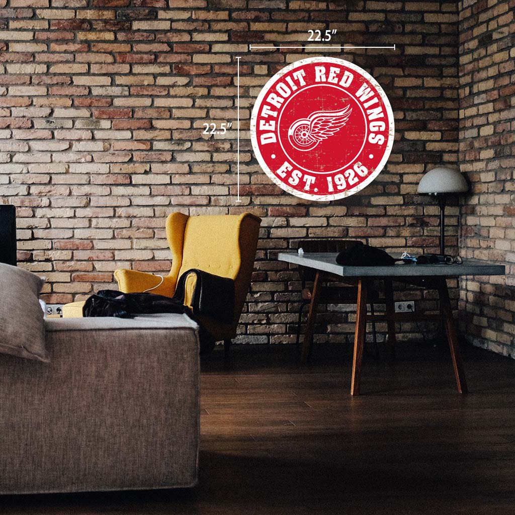 Detroit Red Wings Sign - 22" Round Distressed Logo