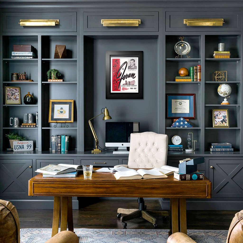 In the early days, long before cell phones and social media, hockey fans would arrive at their arena anxious to buy the latest game program giving them the latest info they needed to follow their favorite team. The advent of digital design and sophisticated photography has dramatically transformed the look and feel of the classic game-night program that captured the attention of fans. As early as the 1920’s, portraits and caricatures captured the scope of what fans would find at the rink. This program from 1966 highlights the minor league Hamilton Red Wings with a classic photo of legend Gordie Howe.
