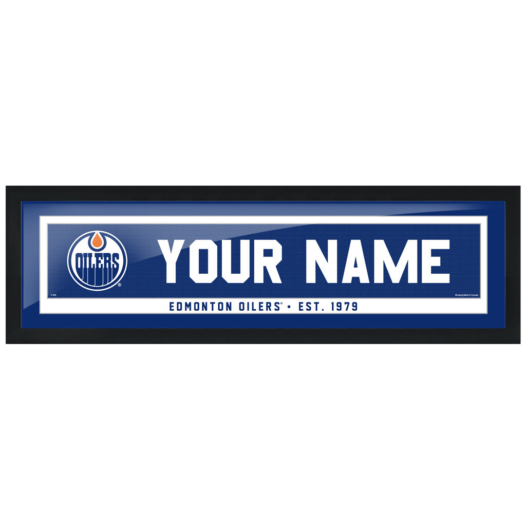 The perfect addition to any hockey Fan Cave, Man Cave, office or bar. This personalized Edmonton Oilers wall art includes one of our officially licensed NHL graphics, printed and placed into our 6” x 22” framed art kits by our Canadian production team. This fine piece of wall-décor ships with a protective acrylic cover to minimize breakage and increase the lifespan of your product. All framed home décor comes with pre-mounted hanging hardware. Additional mounting hardware may be required.