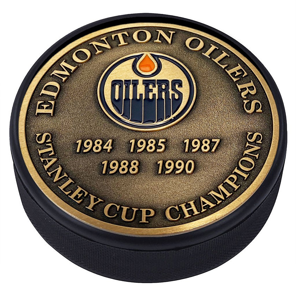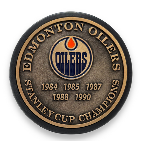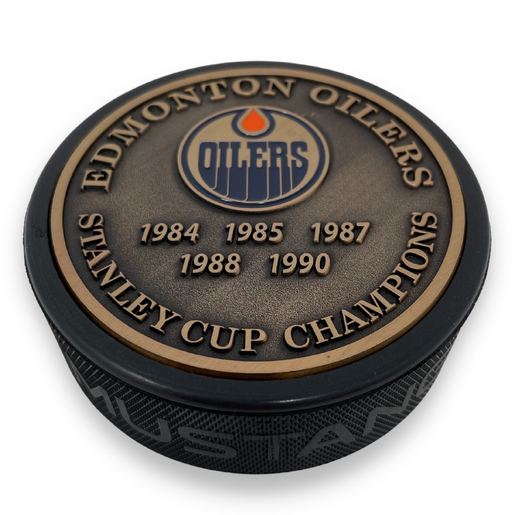 Edmonton Oilers Puck - Stanley Cup Years Gold Medallion