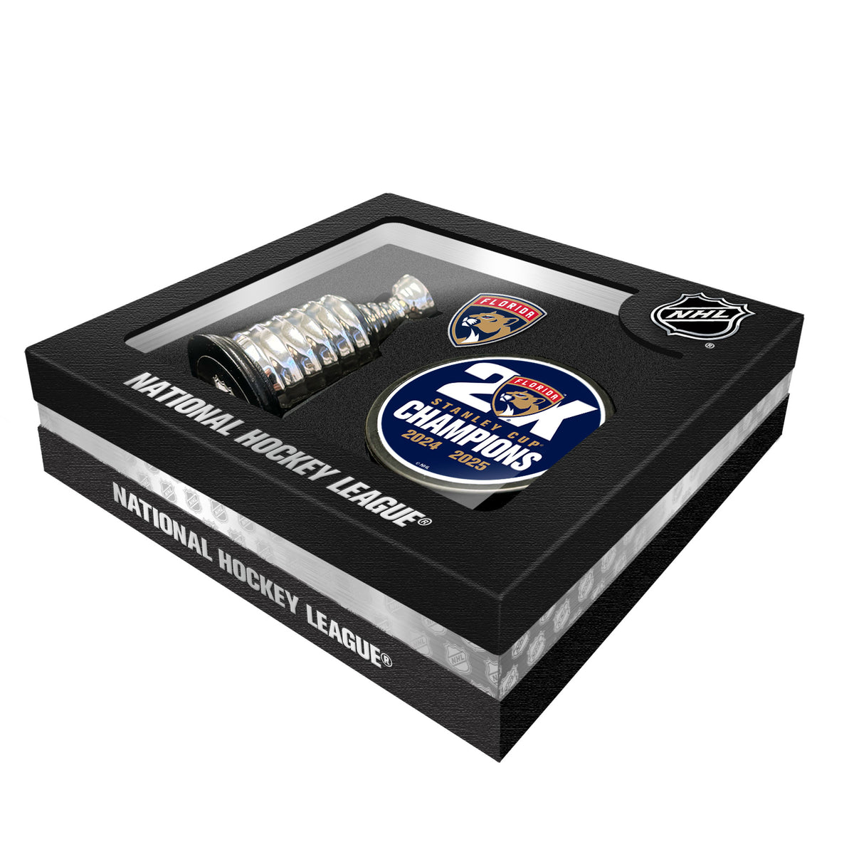Florida Panthers Stanley Cup Champs Puck + Replica Cup Gift Box Set