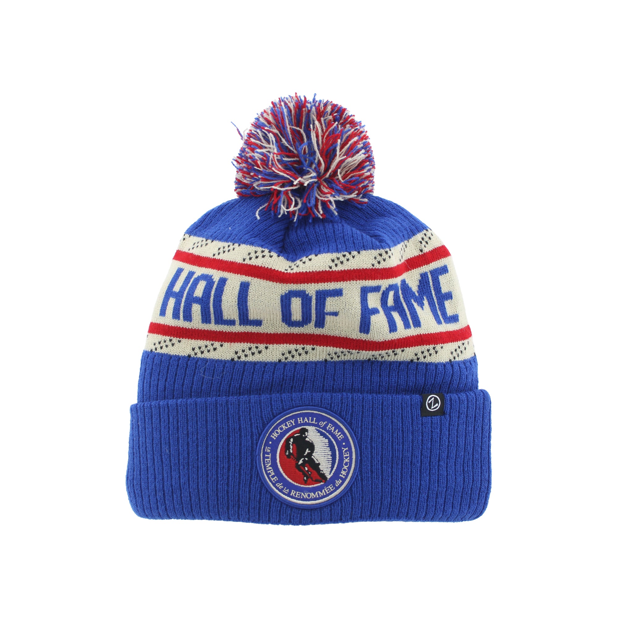 Stay warm and show your love for the game with the Hockey Hall of Fame Pom Toque. This cozy knit hat features bold “HALL OF FAME” lettering across the crown and a colorful red, white, and blue pom on top for a classic hockey look. The fold-up cuff proudly displays the official Hockey Hall of Fame logo patch, making it a perfect accessory for any hockey fan. Whether you’re heading to the rink or braving the winter chill, this toque combines comfort, warmth, and hockey heritage in one iconic design.