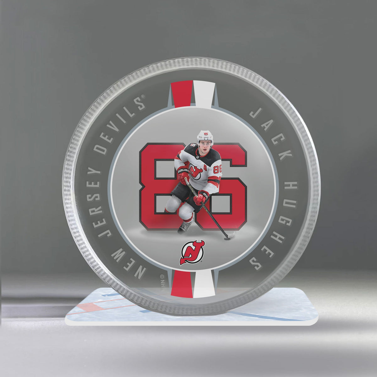Show off your devout Hughes fandom with the crystal Breakout Jack Hughes puck!