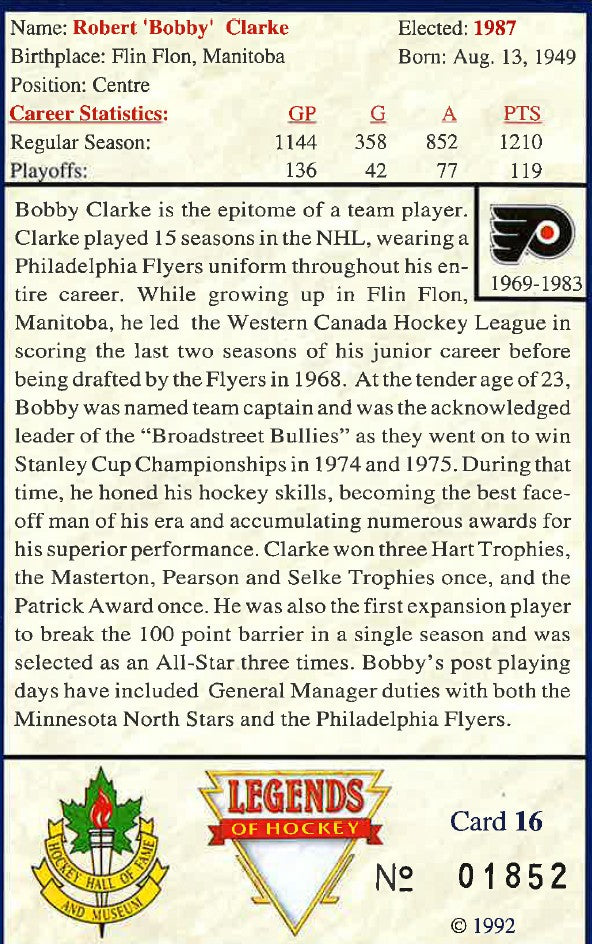 Legends of Hockey | Collectors Card | Bobby Clarke