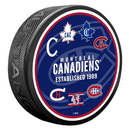 The puck features the team's name, established date, and logos from across the years, all over a faded team logo backdrop. The 3D engraving adds texture that you won’t find with just a regular printed puck, making this a stand-out in your collection!
