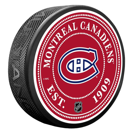 The Stud Montreal Canadiens puck features a team-colored backdrop, with the team’s logo, name, and established date enclosed in studs. The 3D engraving adds texture that you won’t find with just a regular printed puck, making this a stand-out in your collection!