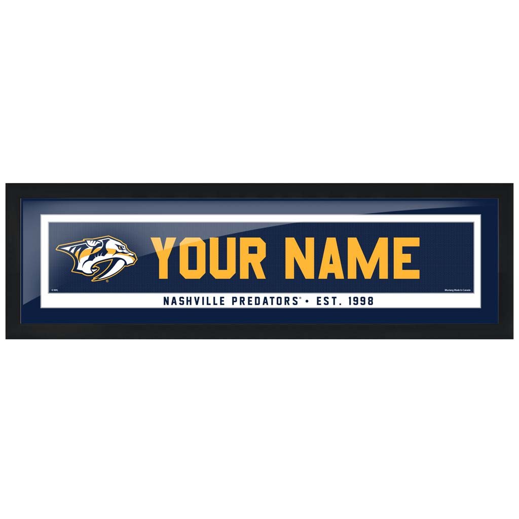 The perfect addition to any hockey Fan Cave, Man Cave, office or bar. This personalized Nashville Predators wall art includes one of our officially licensed NHL graphics, printed and placed into our 6” x 22” framed art kits by our Canadian production team. This fine piece of wall-décor ships with a protective acrylic cover to minimize breakage and increase the lifespan of your product. All framed home décor comes with pre-mounted hanging hardware. Additional mounting hardware may be required.