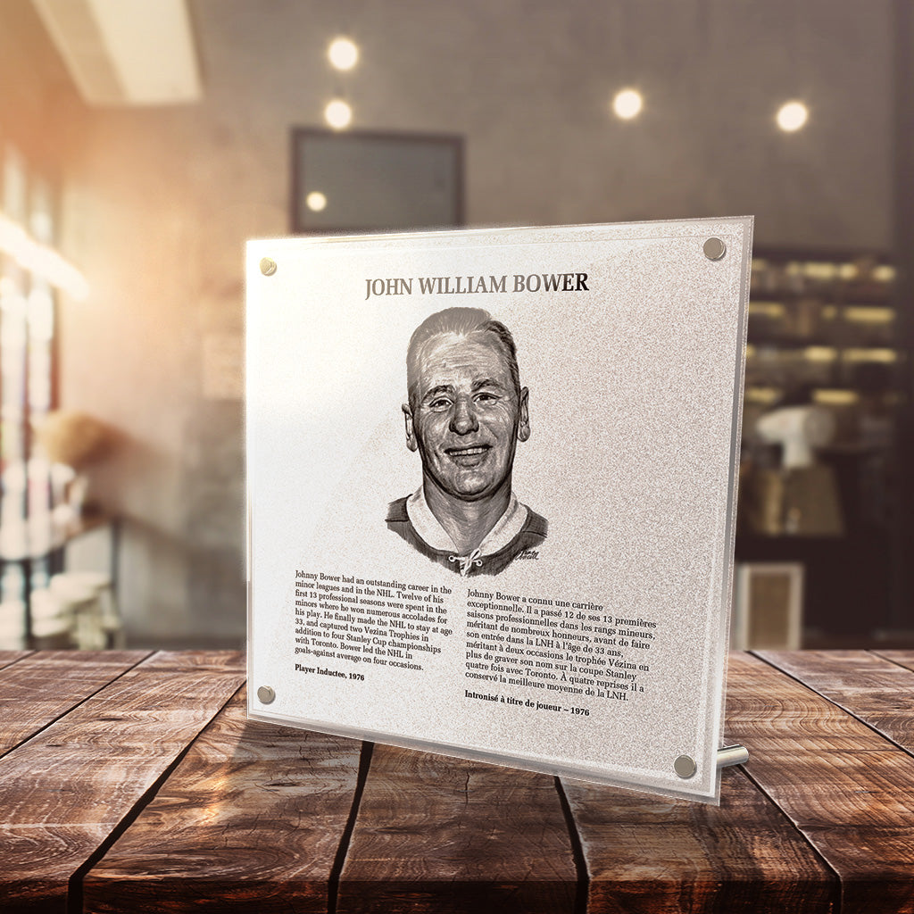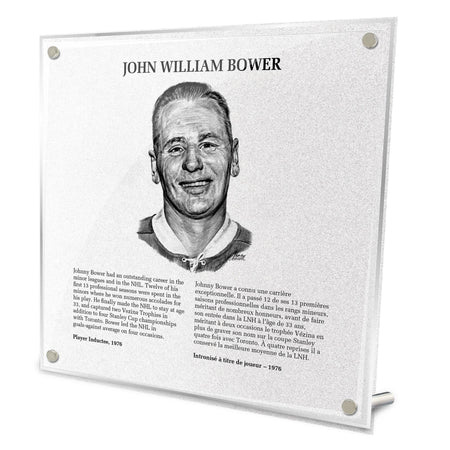 Add a piece of history to your hockey collection with the Johnny Bower plaque!
