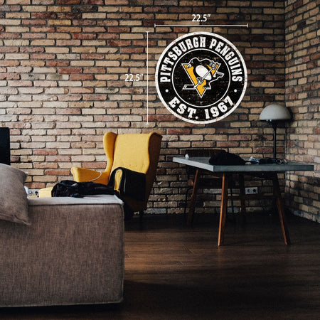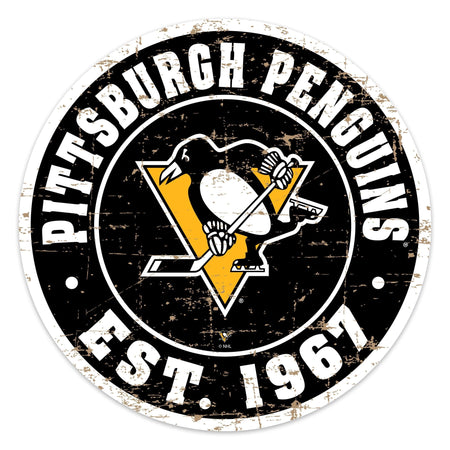 Pittsburgh Penguins Sign - 22" Round Distressed Logo