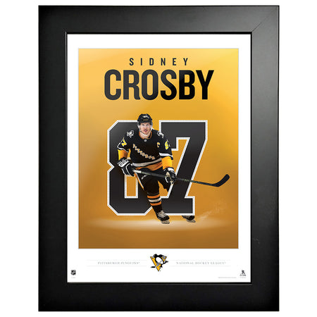 Show off your Pittsburgh Penguins pride with this sleek framed Sidney Crosby player print. Featuring bold graphics of Crosby in action alongside his name and number 87, this officially licensed NHL collectible is the perfect addition to any fan cave, office, or game room. The vibrant Pittsburgh yellow background and crisp presentation make it a standout piece that highlights your favorite player.