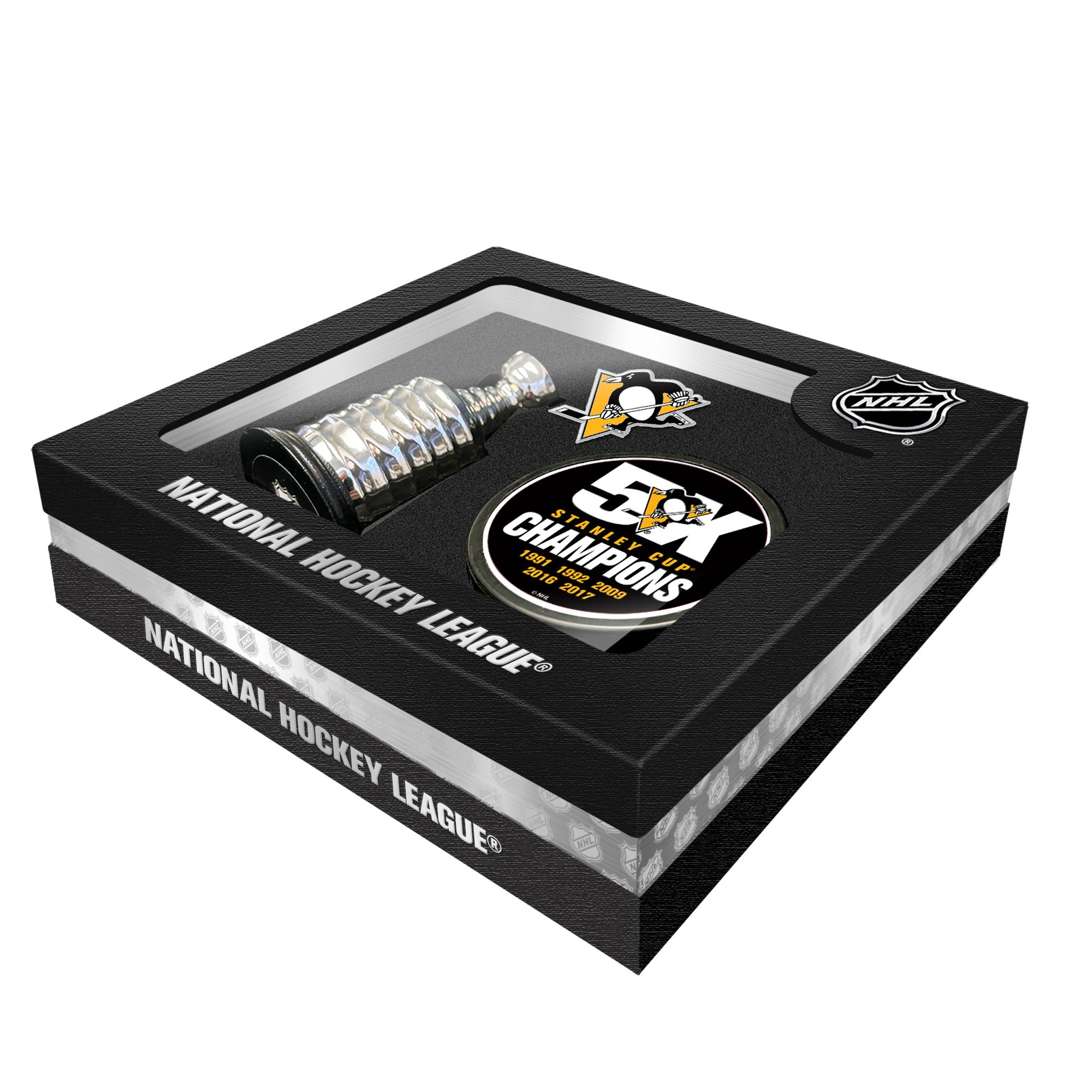 Pittsburgh Penguins Stanley Cup Champs Puck + Replica Cup Gift Box Set