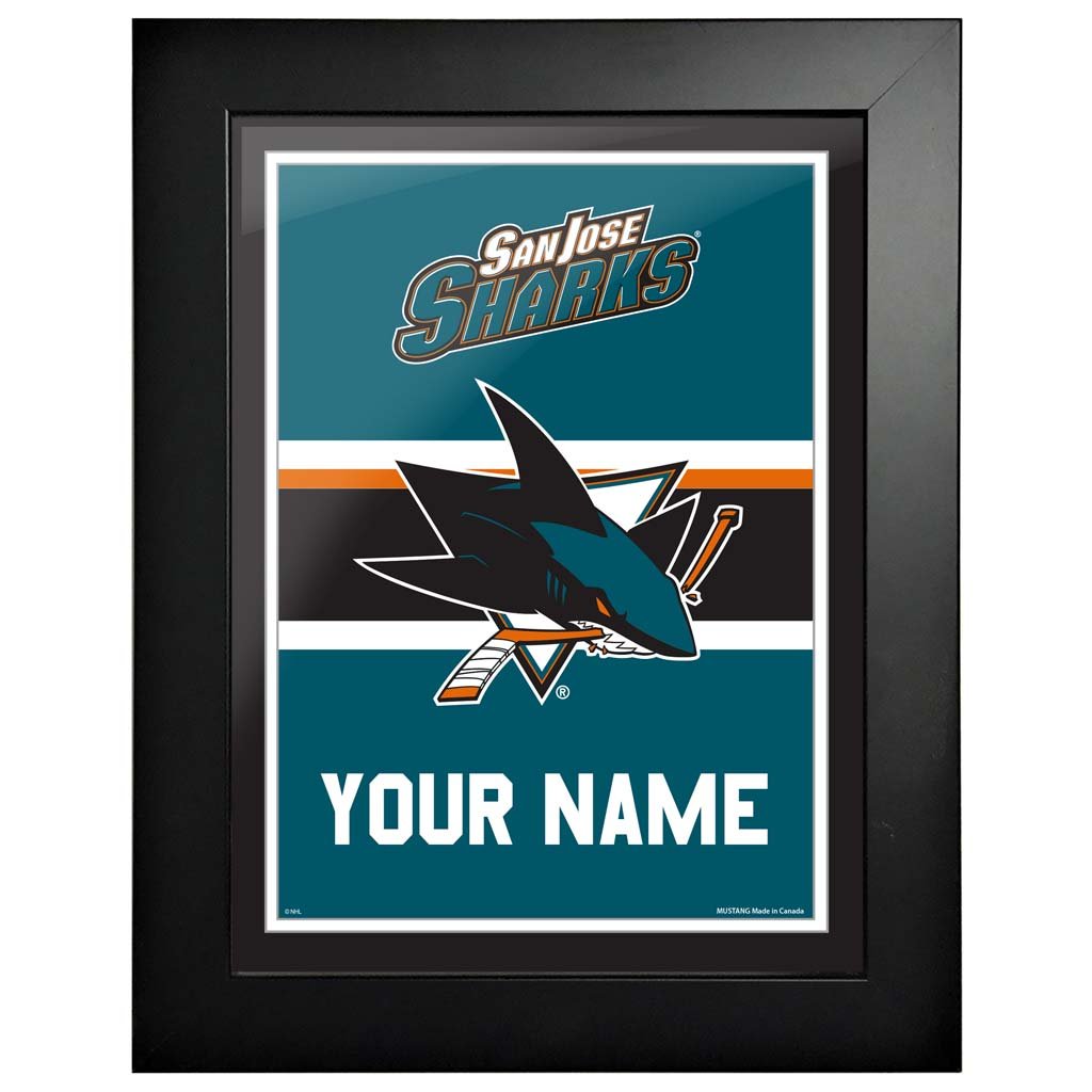 The perfect addition to any hockey Fan Cave, Man Cave, office or bar. This personalized San Jose Sharks wall art includes one of our officially licensed NHL graphics, printed and placed into our 12” x 16” framed art kits by our Canadian production team. This fine piece of wall-décor ships with a protective acrylic cover to minimize breakage and increase the lifespan of your product. All framed home décor comes with pre-mounted hanging hardware. Additional mounting hardware may be required.