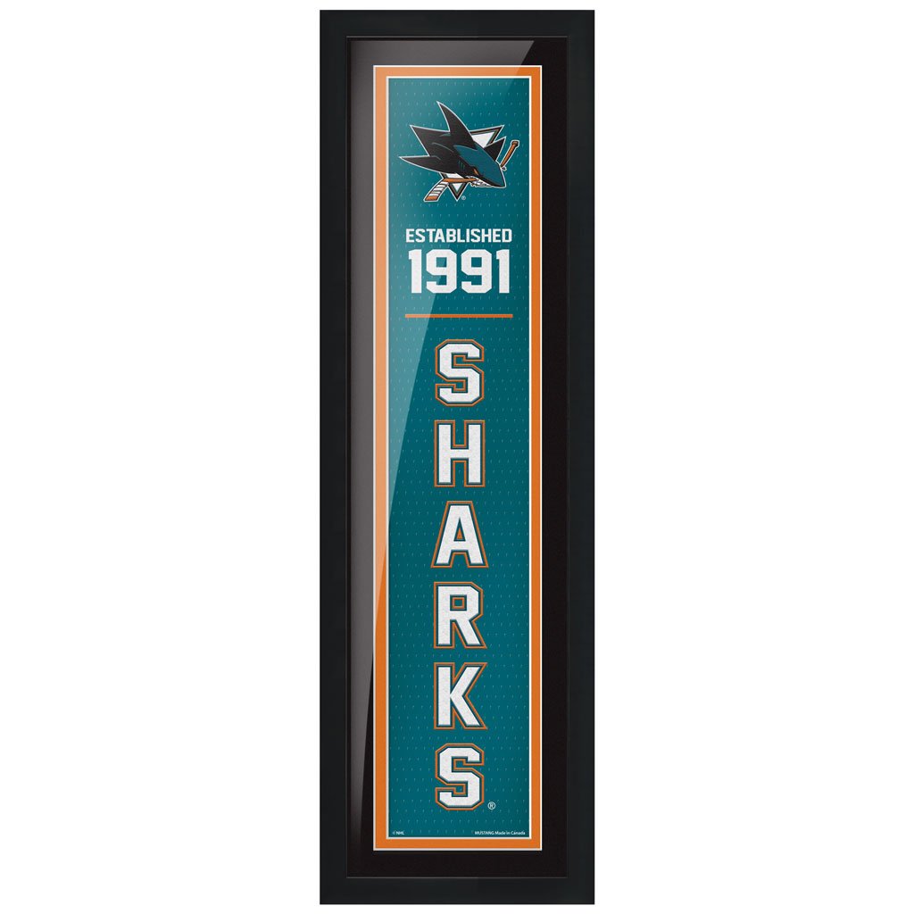 The perfect addition to any hockey Fan Cave, Man Cave, office or bar. This San Jose Sharks wall art includes one of our officially licensed NHL graphics, printed and placed into our 6” x 22” framed art kits by our Canadian production team. This fine piece of wall-décor ships with a protective acrylic cover to minimize breakage and increase the lifespan of your product. All framed home décor comes with pre-mounted hanging hardware. Additional mounting hardware may be required.